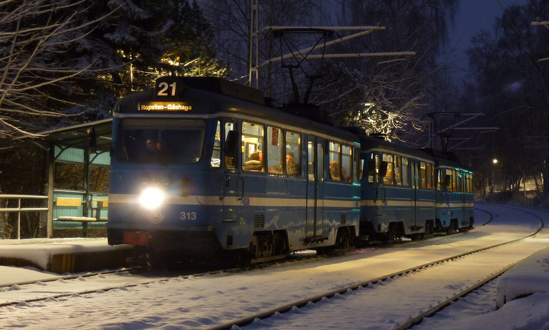Lidingö ligger däremot för sig, och nyttjar dessutom en annan tåglängd än vad som passar de nyare vagnarna. Därigeom måste man antingen förlänga stationerna, alternativt öka turtätheten, vilket blir svårt med dagens till stora delar enkelspåriga linje. Alldeles nyligen påstods det att en lång bro var i dåligt skick, vilket togs som intäkt för en önskan att lägga ned linjen. Kommunen vill gärna bygga motorväg där banvallen idag ligger, trots att den omges av skog på båda sidor. Plats finns alltså till både och, såvida nu inte motorvägen redan behövs för att ersätta dagens spårvagn. Då behövs ju direkt två motorvägar... En debatt som egentligen hör hemma på 60-talet, i mina öron.
